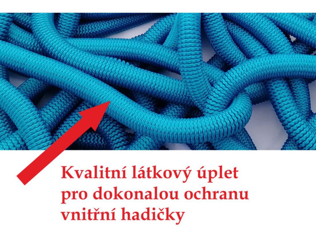 - Flexibilní hadice je vyrobena z latexové hadice uložené v extra odolném tkaninovém úpletu který ochrání hadici proti protržení.